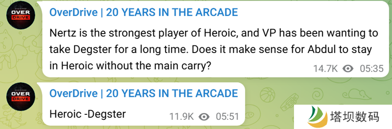 今天爆料人OverDrive在社交平台上透露,degster将会离开HEROIC战队。